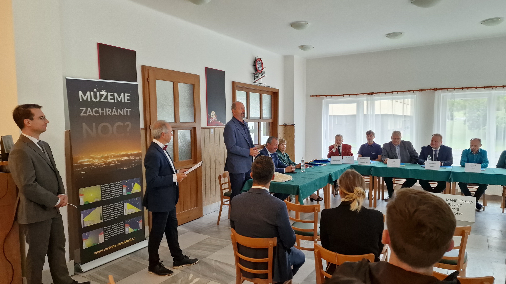 Na tiskové konferenci vystoupili Kamil Hanus, starosta města Manětín, Michal Bareš z České astronomické společnosti, Pavel Suchan z Astronomického ústavu AV ČR, senátorka Věra Procházková z Karlovarského kraje, senátor Pavel Karpíšek z Plzeňského kraje, senátor Jiří Dušek, který se dlouhodobě věnuje problematice světelného znečištění, Jaroslav Hric, zástupce Parku tmavej oblohy Muránska planina ze Slovenska a Anna Pasková z Ministerstva životního prostředí.