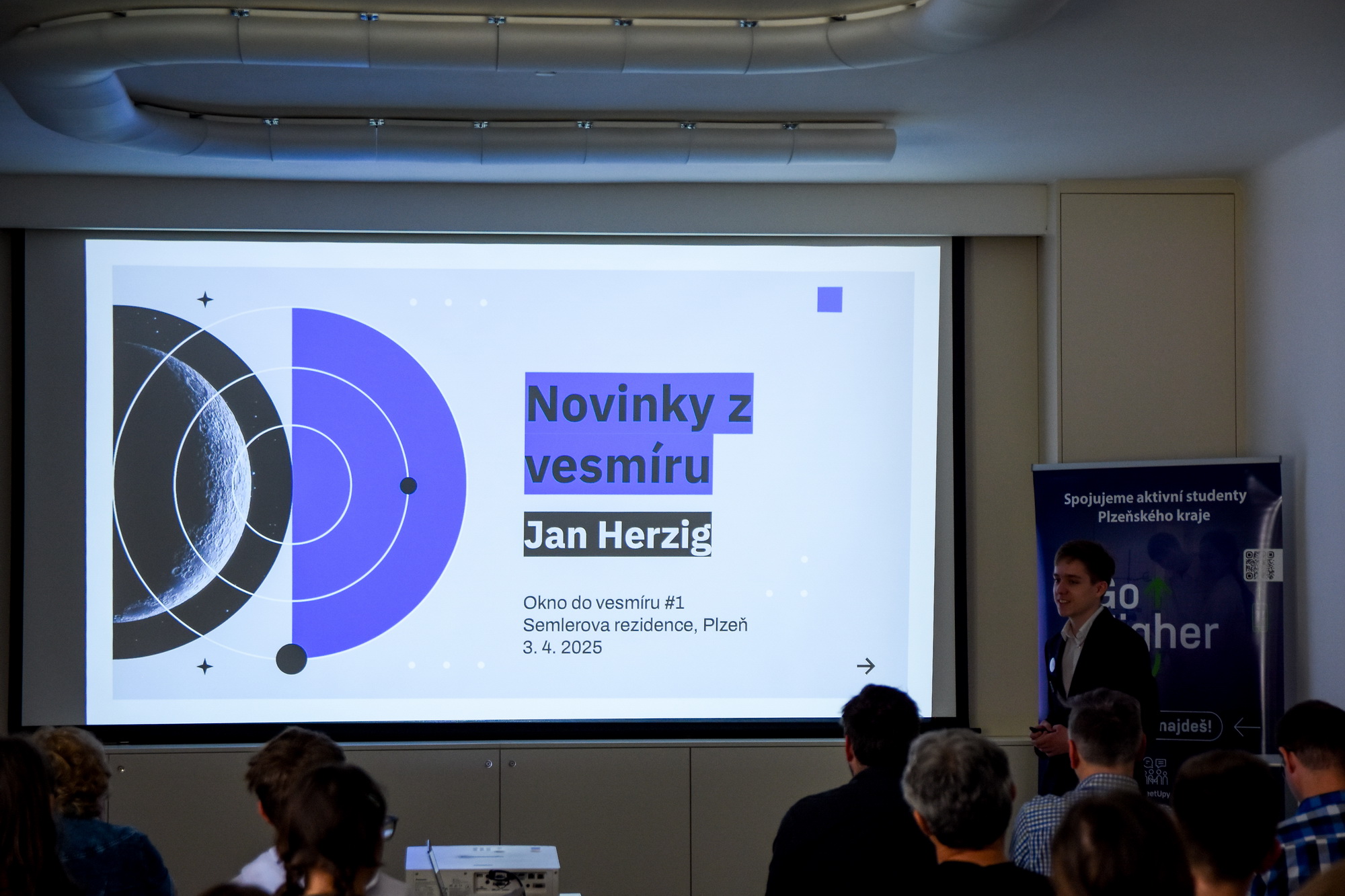 Ve čtvrtek 3. 4. 2025 jsme uspořádali první ze série našich popularizačních akcí zaměřených na téma astronomie, astrofyziky a kosmonautiky. V krásných prostorech Semlerovy rezidence se sešlo více než 50 účastníků z řad žáků středních škol a gymnázií z celého Plzeňského kraje.