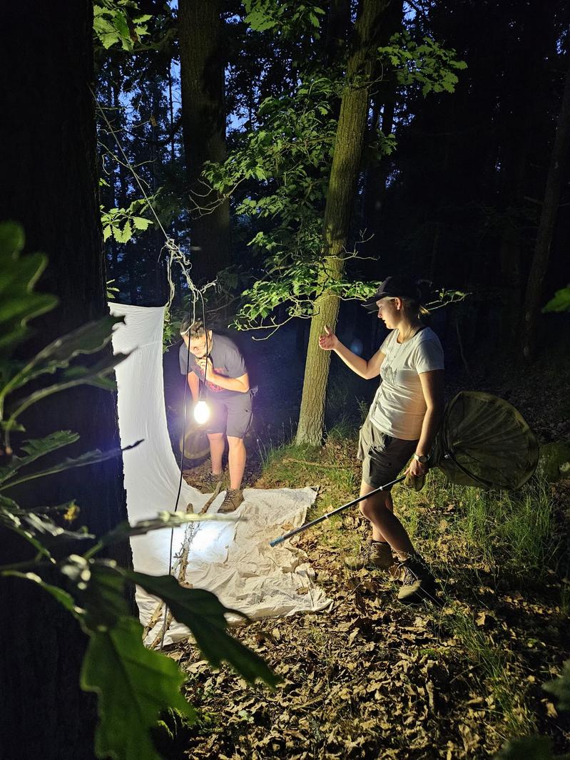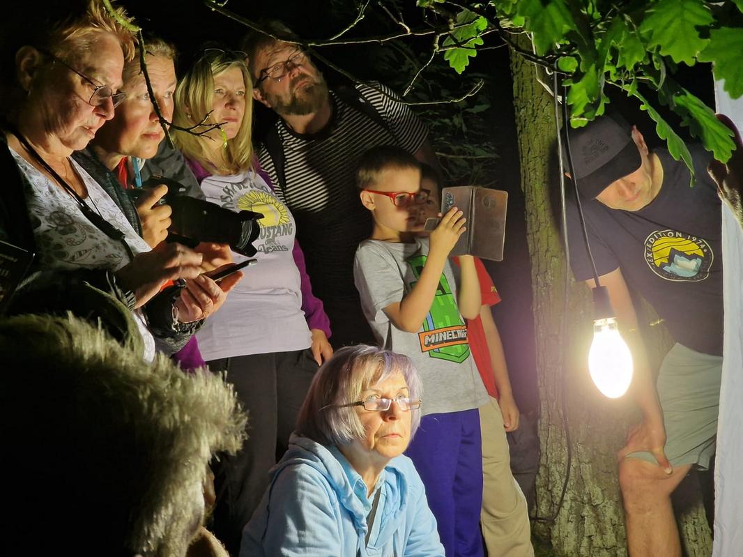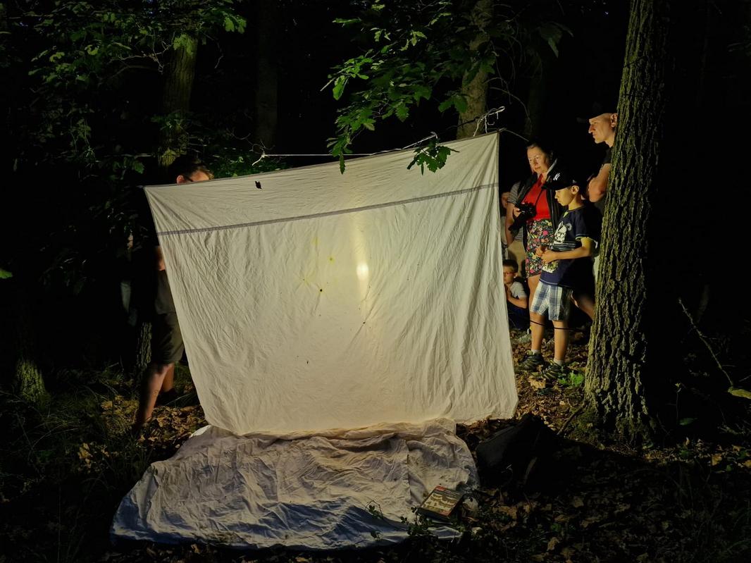 Entomolog Jan Walter ze Západočeského muzea v Plzni pomocí osvětleného plátna a světelného lapače předvedl, jak noční motýli reagují na umělé světlo. Během necelých dvou hodin se podařilo zaznamenat 32 druhů, včetně vzácných, jako je hrotnokřídlec zahradní (zapsaný v Červeném seznamu ohrožených druhů). Mezi další zajímavé úlovky patřili lišaj kyprejový, osenice vykřičníková nebo zejkovec trnkový.