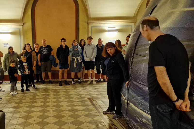 Největší zájem večera patřil mobilnímu digitálnímu planetáriu, které okouzlilo malé i velké návštěvníky. Hvězdná projekce planet, galaxií a vesmírných úkazů vytvořila působivou podívanou a tak se nafukovací kopule stala centrem vesmírného dobrodružství.