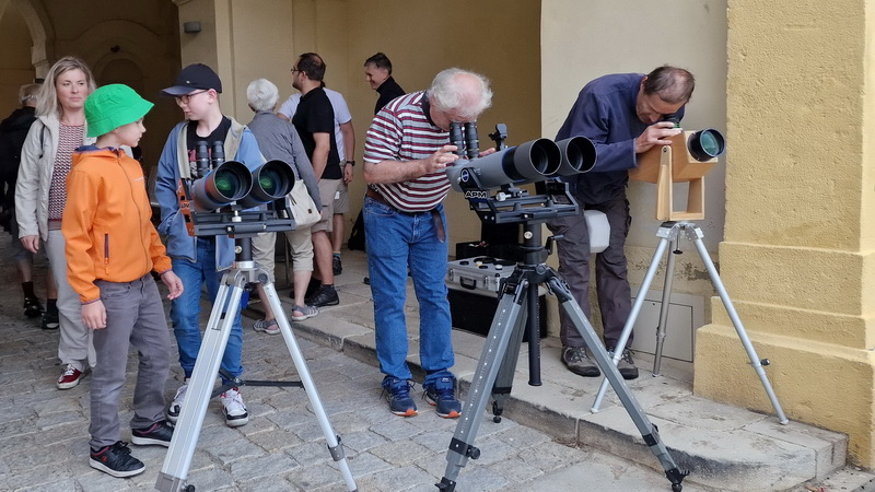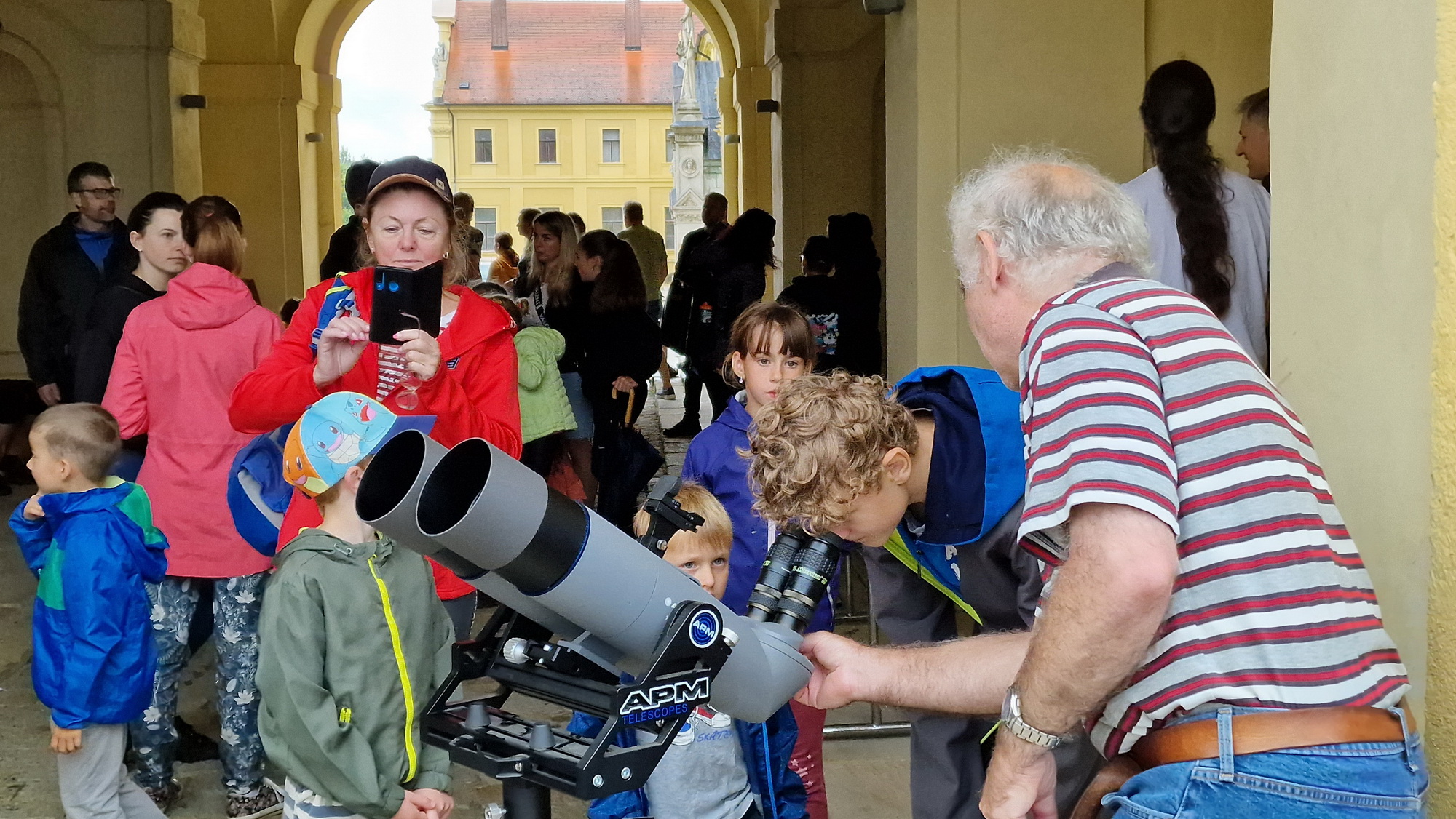 Kvůli dešti se nepodařilo uskutečnit plánované noční pozorování dalekohledy. Zájemci však díky moderní technice, umístěné v krytých částech kláštera, mohli obdivovat vzdálené pozemské objekty – od detailů krajiny až po barokní prvky samotného kláštera.