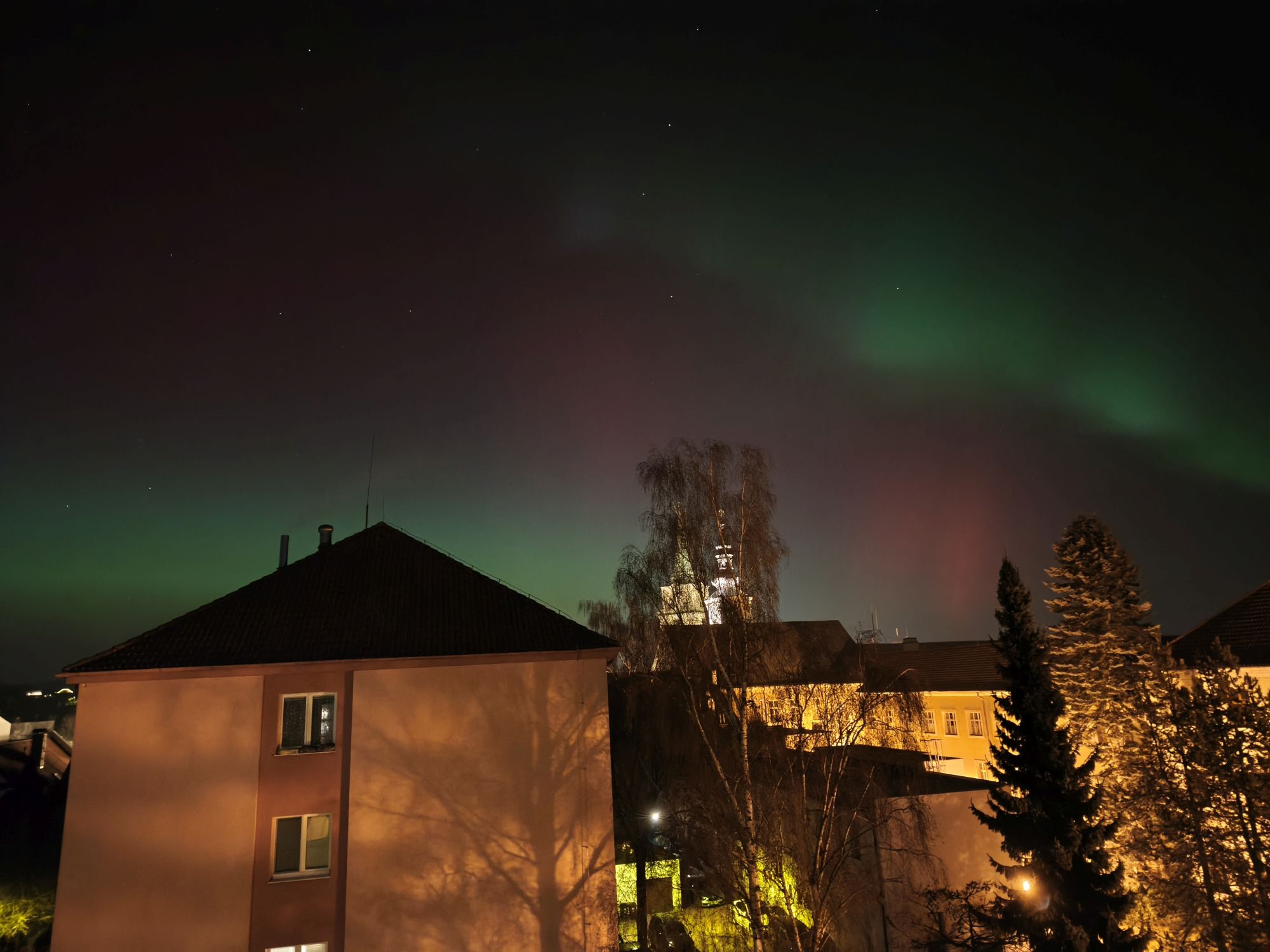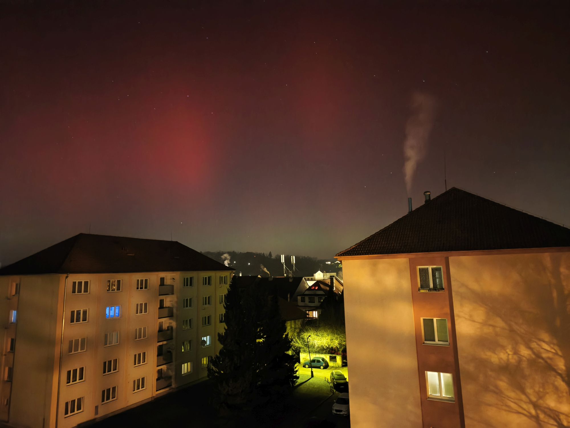 Fotografie z pozorování polární záře z 19. 1. 2026