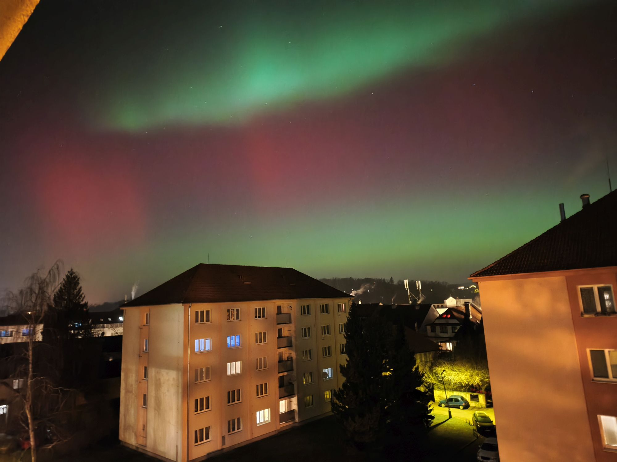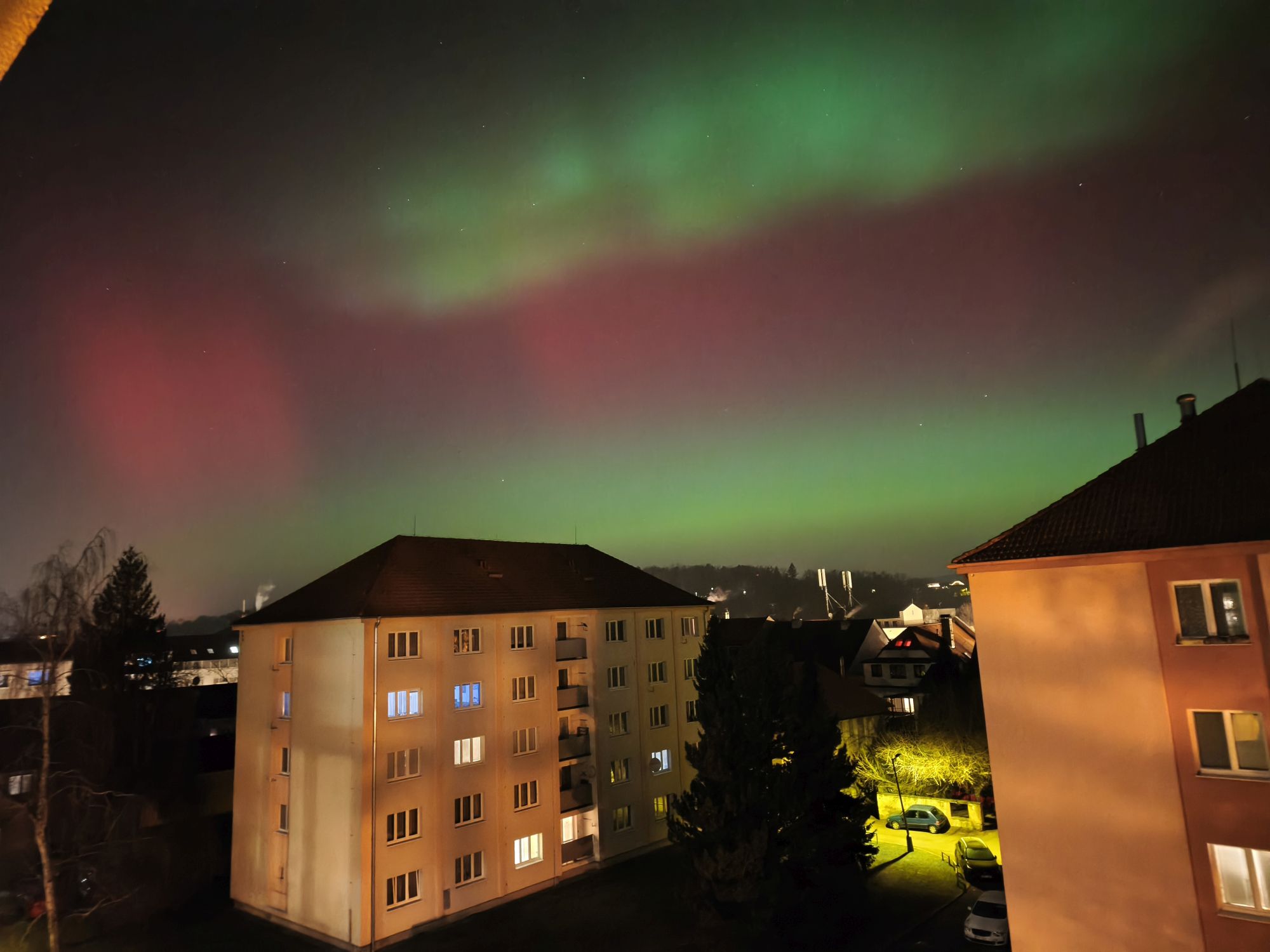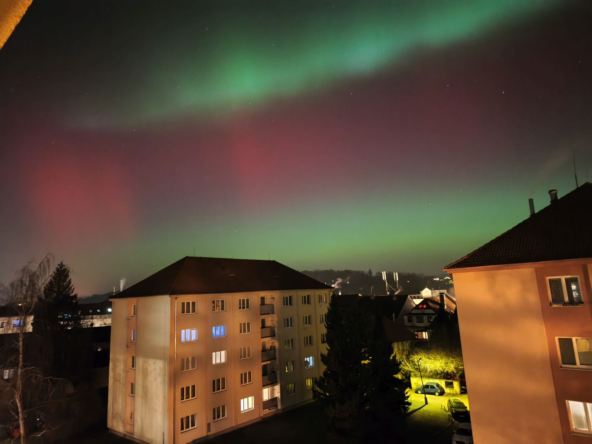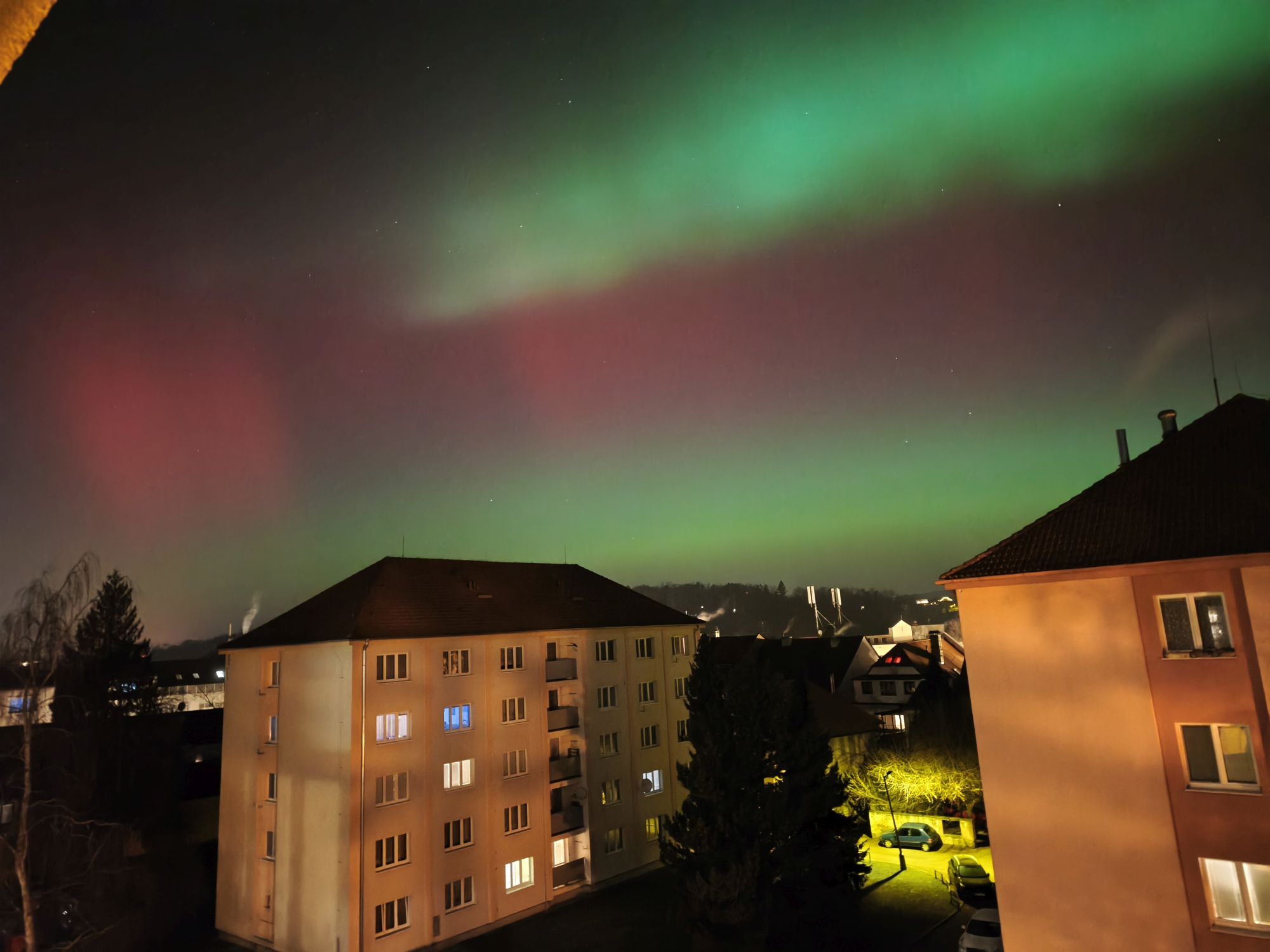 Obloha nad západními Čechami se 19. ledna rozzářila barvami, které u nás vídáme jen výjimečně. Nečekaně jasná a mimořádně dynamická polární záře nabídla podívanou, na kterou budou mnozí pozorovatelé dlouho vzpomínat. Úkaz se začal výrazněji projevovat po 20 hodině (všechny časy v SEČ), ale nejintenzivnější fáze přišla mezi 22 až 23 hodinou, kdy se nad severním obzorem objevily rychle se měnící struktury v odstínech červené, fialové i zelené. V některých momentech byla záře natolik jasná, že byla dobře viditelná i z městských částí s výraznějším světelným znečištěním. Pozorovatelé hlásili nejen široké difúzní pásy, ale také jemné paprsky a vertikální sloupce, které se během několika sekund měnily a posouvaly. Právě tato neobvyklá dynamika dělala z celého jevu výjimečný zážitek, jaký se v našich zeměpisných šířkách objevuje jen zřídka.