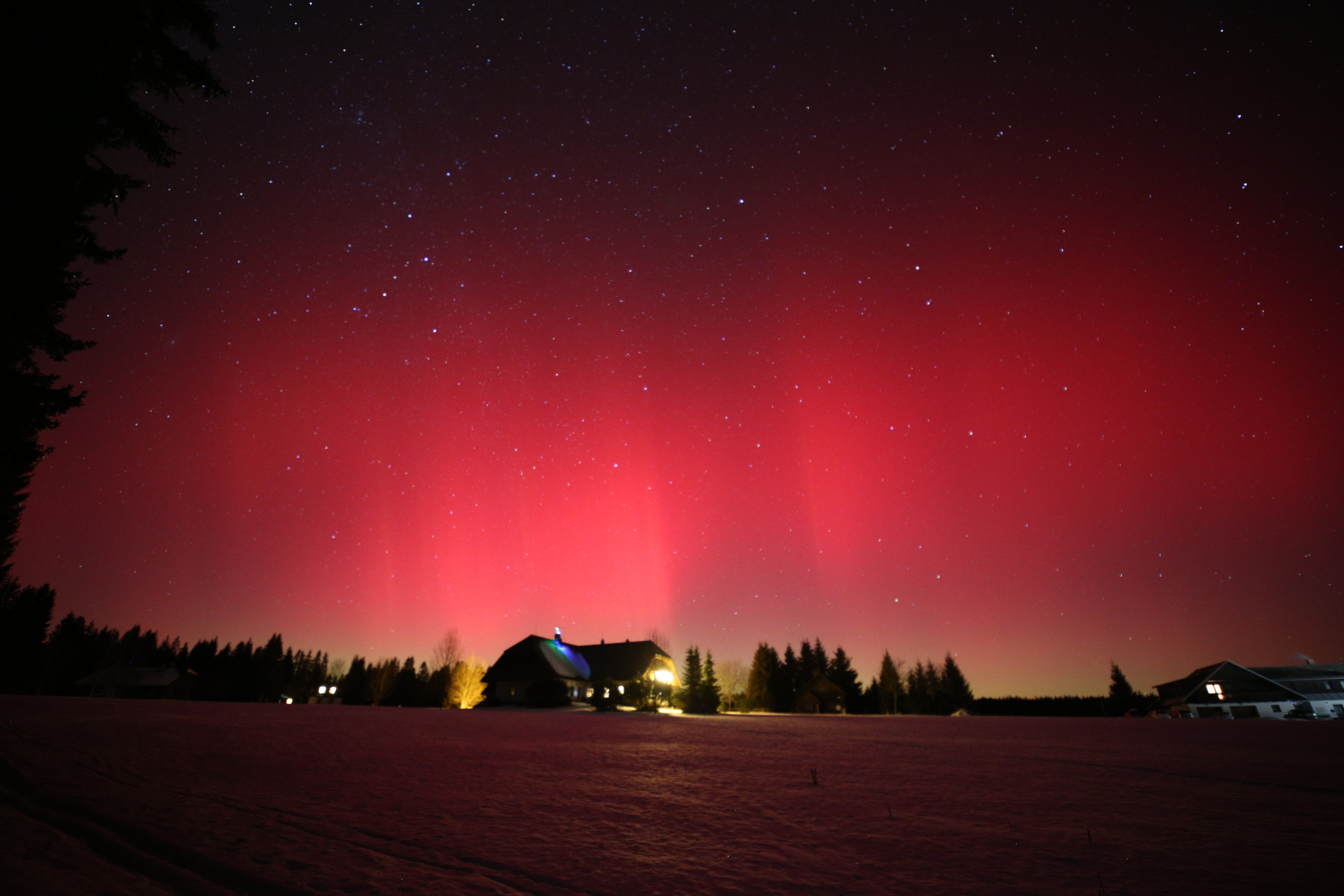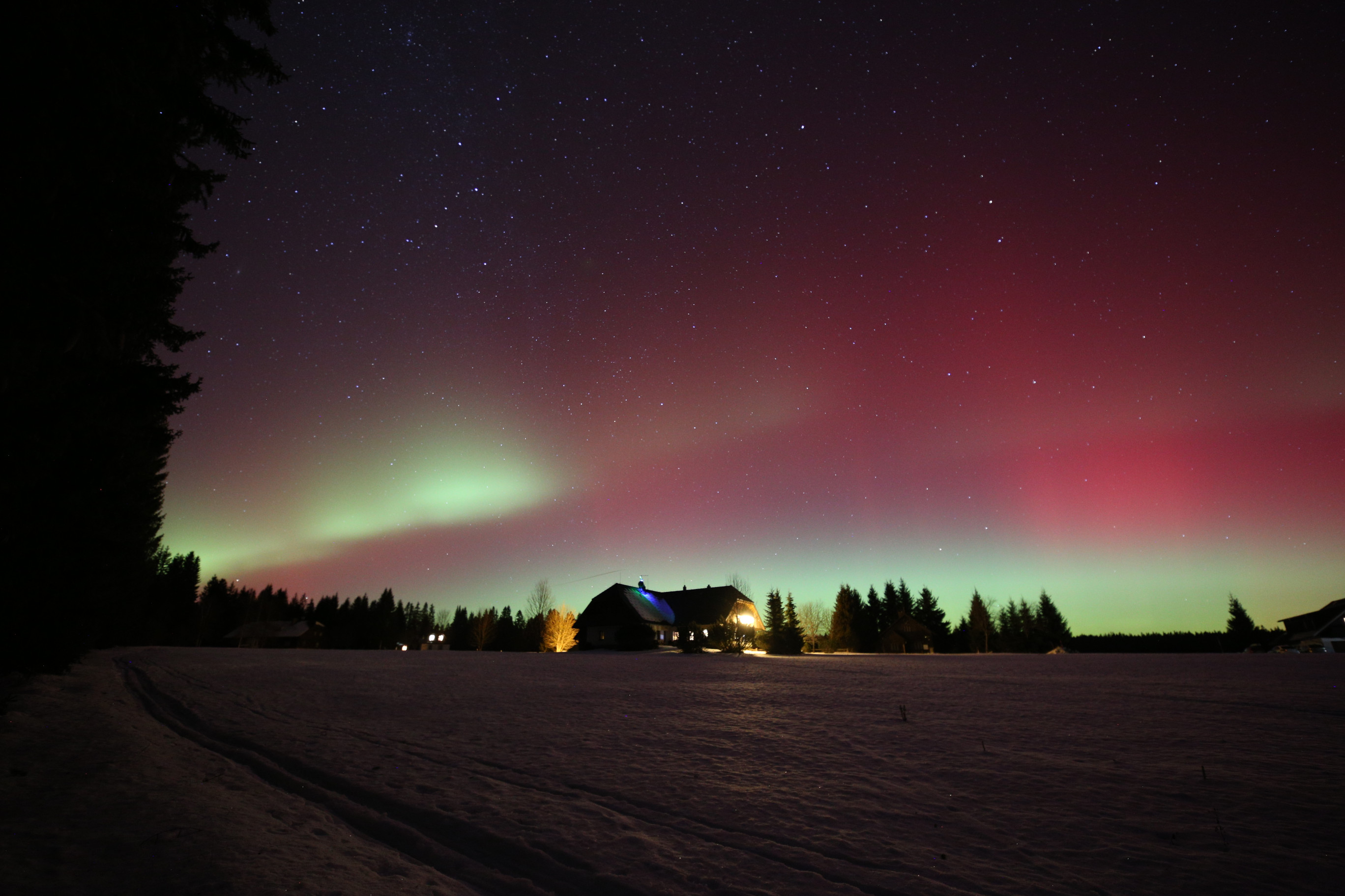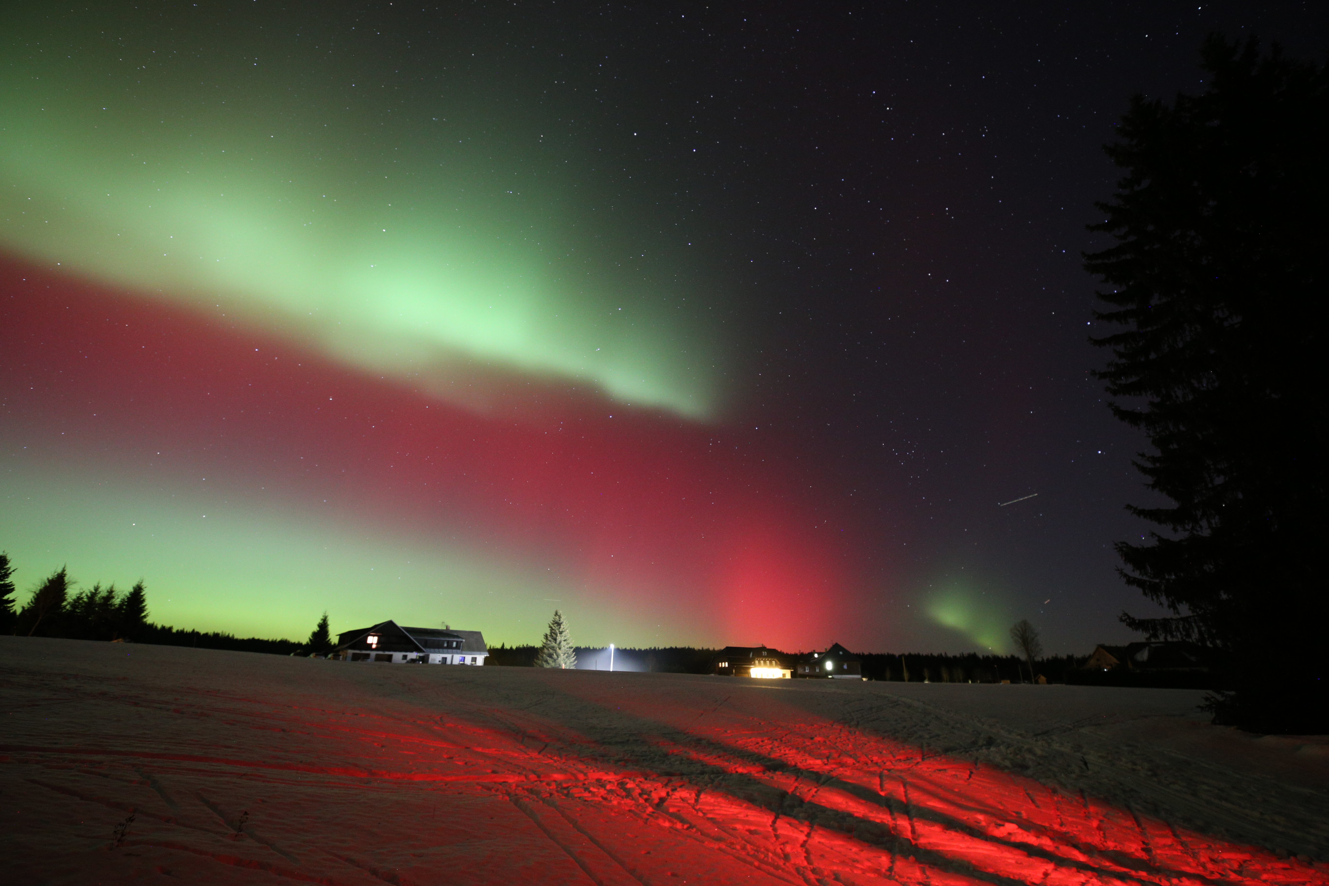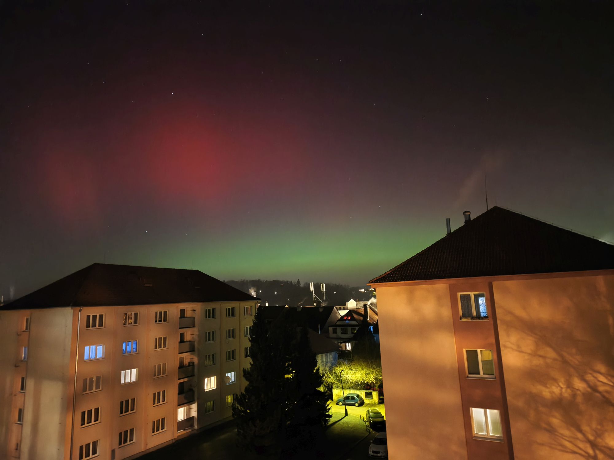Obloha nad západními Čechami se 19. ledna rozzářila barvami, které u nás vídáme jen výjimečně. Nečekaně jasná a mimořádně dynamická polární záře nabídla podívanou, na kterou budou mnozí pozorovatelé dlouho vzpomínat. Úkaz se začal výrazněji projevovat po 20 hodině (všechny časy v SEČ), ale nejintenzivnější fáze přišla mezi 22 až 23 hodinou, kdy se nad severním obzorem objevily rychle se měnící struktury v odstínech červené, fialové i zelené. V některých momentech byla záře natolik jasná, že byla dobře viditelná i z městských částí s výraznějším světelným znečištěním. Pozorovatelé hlásili nejen široké difúzní pásy, ale také jemné paprsky a vertikální sloupce, které se během několika sekund měnily a posouvaly. Právě tato neobvyklá dynamika dělala z celého jevu výjimečný zážitek, jaký se v našich zeměpisných šířkách objevuje jen zřídka.