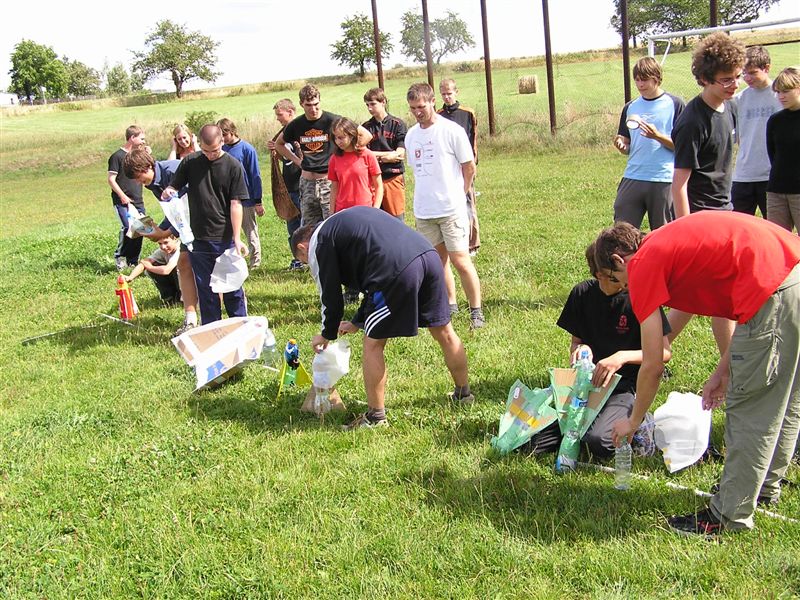 Letošní Den s pobočkou vypadal že proprší, alespoň ranní vydatný déšť tomu nasvědčoval. Naštěstí první část dne byla věnována stavění raket na vodní pohon a k tomu déšť nevadí. Úkolem 5 skupin bylo postavit do oběda raketu nebo rakety, které budou mezi sebou soutěžit o co nejdelší dolet a co nejvyšší dobu setrvání ve vzduchu. Vzhledem k tomu, že na expedici jezdí spousta lidí, objevilo se mnoho nápadů jak rakety vylepšit a zdokonalit. Již při testovacích startech bylo vidět, že s délkou letu nebude problém. Horší situace nastala s udržením rakety co nejdelší dobu ve vzduchu. Po obědě následoval oficiální start, který měl čtyři kola. Nejdelší let nakonec měřil 54,8 metru a nejdéle vydržela raketa ve vzduchu 4,33 sekundy, naproti tomu nejkratší měřená délka byla v záporných číslech, když raketa hnána větrem přistála za zády odpalujících.