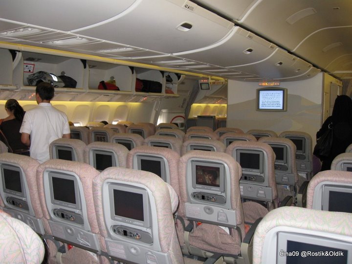 Pristali jsme,je to jako v hezkem letajicim autobusu,kdyz to nespadne,je to docela dobre svezeni.V prvni tride je v cene postel,v normalni jen polstarek.Videli jsme na motor,ale rychle mam zmizel ve tme a za zavrenym okenkem,tak jsme doufali ze ho stale hori jen ta spravna cast a usnuli.V Dubaji byla venku sauna,33st a strasne vlhko,v Sanghaji je jeste o stupen vic.Sjeli nas termokamerou a chteli lekarsky formular.PS:Jidlo je skvele,nacpe se i clovicek mych rozmeru,to obdivuju.Oldriska ma lehkou dekomprecni nemoc.Jdem na Maglev a pak proklickovat metrem na hotel.