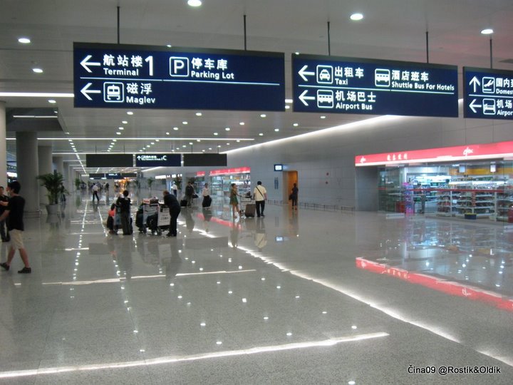 Zpráva z večera: Cesta sem vyšla jednoho zhruba na 6 tisíc korun. Emirates mají opravdu špičkový servis, po večeři jsme dostali balíček s náhradními ponožkami, kartáčkem na zuby, pastou a přikrývkou očí pro klidný spánek, všechno s logem přepravce jako dárek. Maglev super, rychlost není skoro vůbec znát, akorát okolo ubíhá krajina. Hostel v centru u Lidového Náměstí (People\'s Square) útulný, čistý, foto bude zítra na webu. Ve vybavení je koupelna, televize a počítač, klimatizace, servis, anglicky mluvící ochotný personál včetně američanky žijící zde a zařizující vše potřebné mluvící perfektně čínsky za cca 125Kč na noc na jednoho. Ceny jídla neskutečně nízké, kompletní večeře na jednoho s polévkou a pitím cca 15RMB, což je asi 40Kč. Učili jsme se jíst hůlkama, nutno říci že docela úspěšně. Na ulici jde potkat žebráky, chovejte se nenápadně, jejich přítomnost prostě ignorujte a nedávejte najevo svoji movitost. Rosťa a Oldřiška