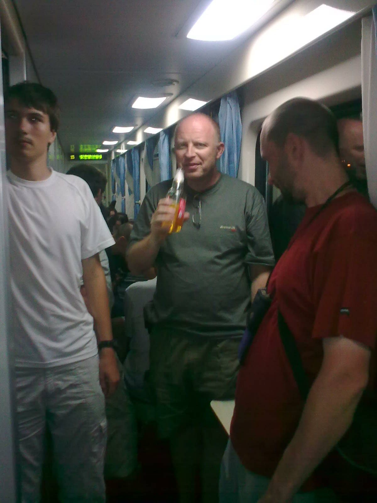 Večerní jízda vlakem do Xi anu začala dobře. S přibývajícími láhvemi alkoholu piva a vína nálada stoupá :-):-P. Může nás zachránit pouze večerka ve 22 hodin.
