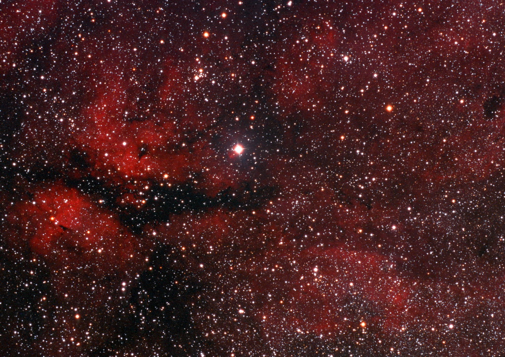 Jedním z typických příkladů emisních mlhovin je mlhovina IC 1318 nacházející se v pásu mléčné dráhy v souhvězdí Labutě. Jedná se vlastně o obrovský oblak plynu a prachu s průměrem okolo 100 světelných let, který je ohříván žhavou hvězdou uvnitř. Následkem toho svítí. Mlhovina dostala díky svému tvaru na obloze příhodný název Motýlí mlhovina a její vzdálenost se odhaduje okolo 5000 - 5500 světelných let. Nejjasnější hvězda viditelná na snímku je hvězda Sadr, která patří zároveň mezi nejjasnější v souhvězdí Labutě. Ač je vzdálena jen kousek od mlhoviny, nemá s její existencí nic společného, protože se nachází o více než 3000 světelných let blíže k nám.