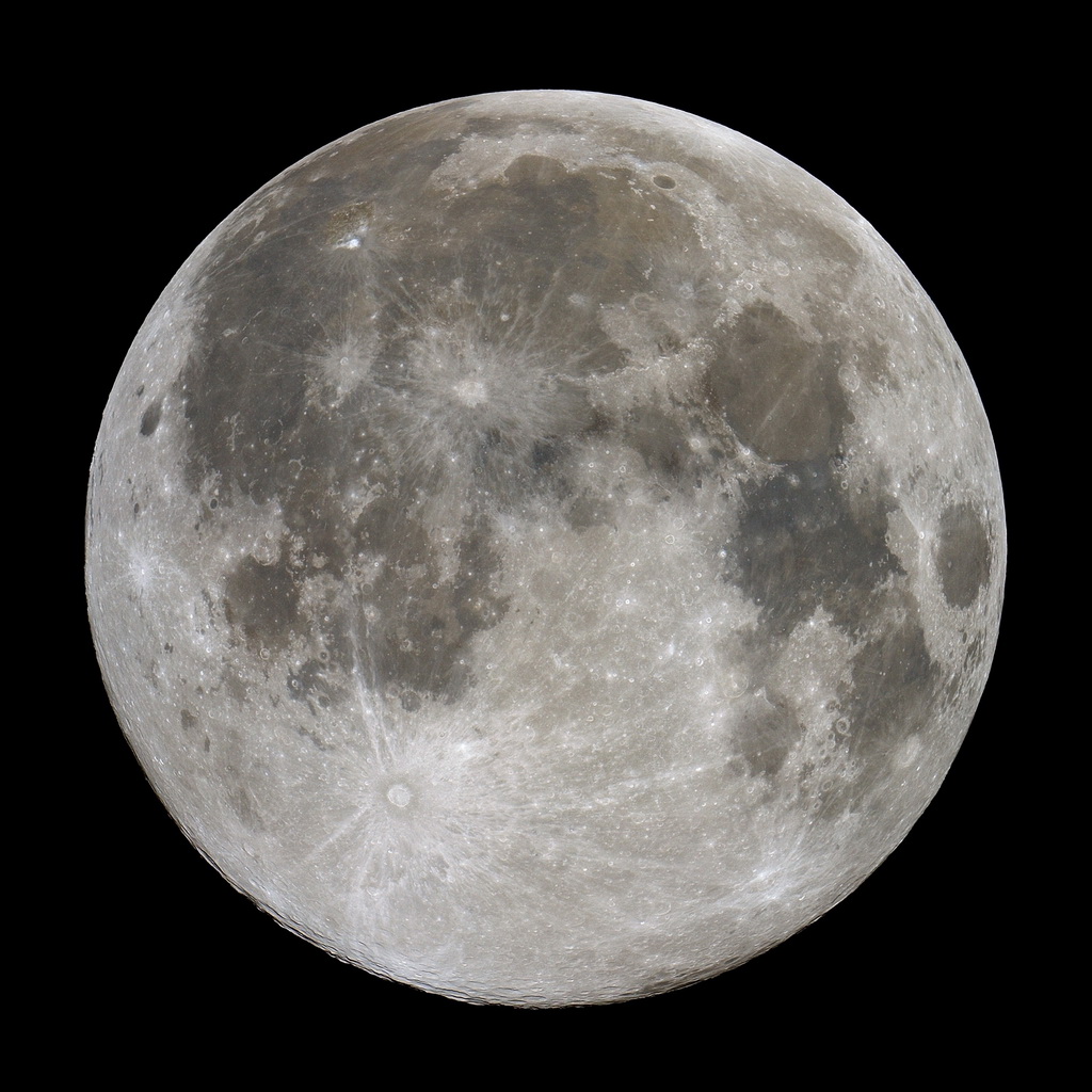 Období, kdy je Měsíc ve fázi okolo úplňku, zaregistruje asi každý člověk. Je totiž viditelný téměř po celou noc a svým světlem často brání lidem v klidném spánku. Není se čemu divit. Úplňkový Měsíc je po Slunci druhým nejjasnějším objektem, který můžeme na obloze pozorovat. Bohužel dalekohledem toho na jeho povrchu v této době mnoho neuvidíme. Sluneční paprsky totiž nasvěcují měsíční povrch takřka kolmo, takže veškeré plastické útvary jako hory nebo krátery nevrhají žádný stín. Zato však pěkně vyniknou všechna měsíční moře a u největších kráterů můžeme pozorovat dlouhé paprsky. Ty jsou způsobeny dopadem horniny na měsíční povrch, která byla vyvržena při vzniku kráteru. Ze vzdálenosti, kam až se vyvržená hornina dostala, můžeme tušit, že náraz cizího tělesa, který dal vzniknout mateřskému kráteru, musel být opravdu ohromný. Jedním z nejznámějších případů paprskových kráterů je kráter Tycho (na snímku vlevo dole), který má průměr 85 km a je hluboký téměř 5km.