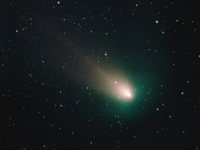 Expozice musela být, kvůli jasu Měsíce, zkrácena na 1,5 minuty. Při delší expozici již byly snímky příliš světlé a jádro komety přepálené. I při této krátké expozici bylo nutno pointovat na kometu. Snímek byl složen z 8 fotografií, pointovaných přímo na kometu. Při zpracování byly nejdříve od snímku komety odečteny hvězdy, které by se zobrazily jako čárky, a výsledný zprůměrovaný snímek komety byl vrácen zpět do hvězdného pozadí pointovaného na hvězdy. Poloha komety odpovídá 00:21 UT