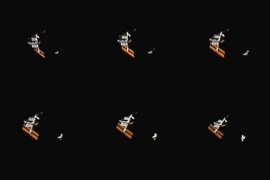 Snímek zachycuje přelet mezinárodní kosmické stanice ISS s raketoplánem Atlantis po plzeňské obloze. Dalekohled byl ručně naváděn a za pomoci fotoaparátu Canon pořídil sekvenci obrázků, z nichž byla pořízena tato úžasná koláž. Na snímku můžeme vidět nejen obě zmiňovaná tělesa, ale zejména mnohé detaily stále budované stanice. Kromě panelů, které jsou díky svému úctyhodnému rozpětí blížícímu se ke stu metrům dominantním útvarem, vidíme i obytné a servisní moduly, včetně poměrně malého, čtrnáct metrů dlouhého modulu Zarja.