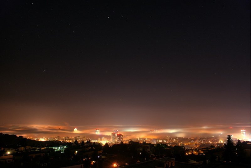 | Popis autora: | S príchodom zimnej nízkej oblačnosti sa naskytla po niekoľkých rokoch šanca zopakovať fotografiu pohľadu na Košice, ktorú som do fotosúťaže už raz zaslal a ktorá pekne ukazuje zmenu svetelných pomerov u nás. Bohužiaľ, obchodné centrum neprestalo svietiť a čo viac, pridali sa ďalšie zdroje, napríklad novo nasvetlený Dóm sv. Alžbety v centre. |