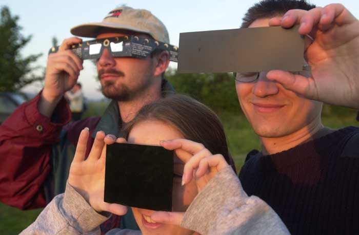 Zatmění Slunce časně ráno 31.května 2003 bylo příslibem krásného nebeského představení, jež jsme se pokusili napozorovat a uspořádali i veřejné pozorování na hvězdárně v Rokycanech. Abychom viděli opravdu vše, vyrazili jsme nad hvězdárnu na starou nepoužívanou cestu, odkud byl mnohem lépe vidět východní obzor. Pozorování se opravdu vydařilo a zde máte možnost si prohlédnout i několik fotografií z této události od Petra Ereta, Michala Rottenborna, Josefa Jíry a Honzy Dvořáka.