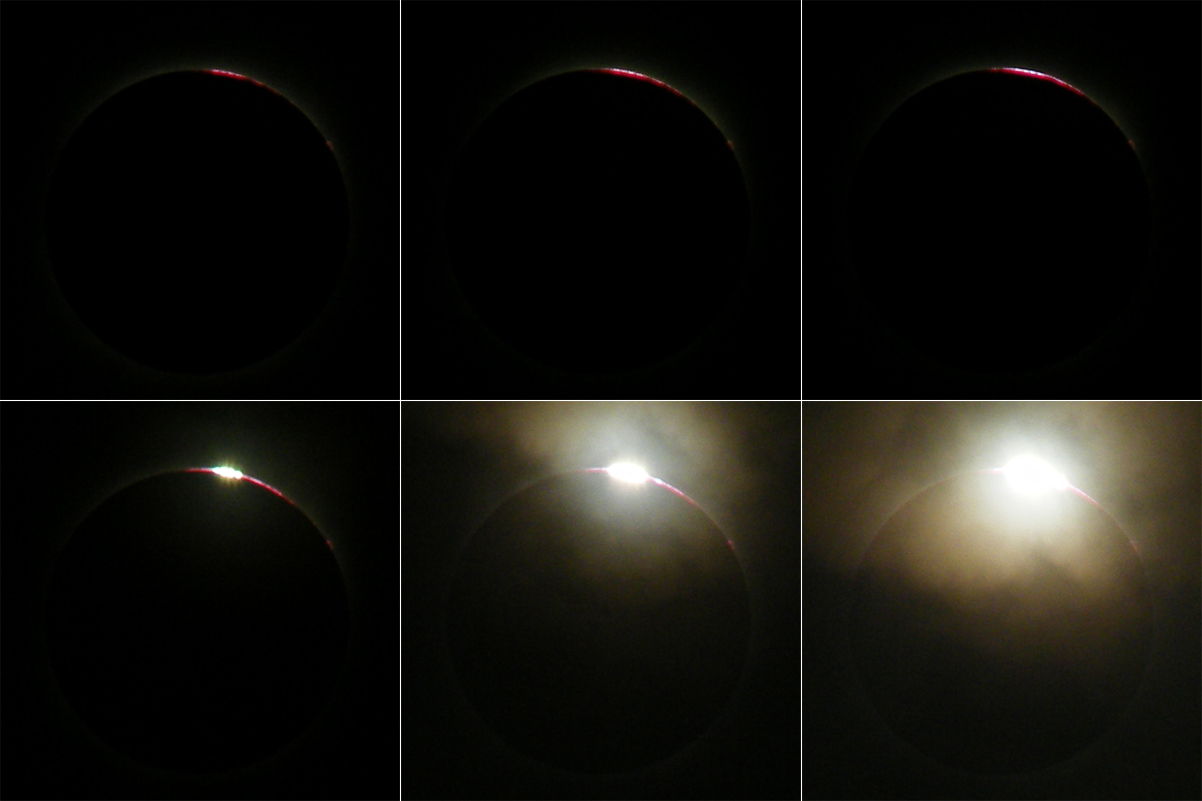 V průběhu úplného zatmění Slunce 22. července 2009 byla provedena série snímků kolem okamžiku T3 (konec úplné fáze zatmění).
