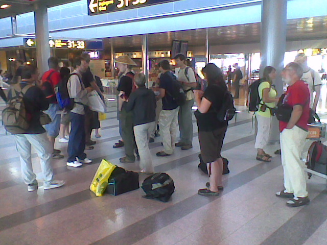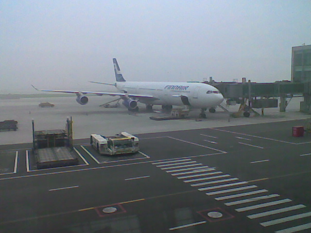 Po osmi hodinach stravenych ve strnule poloze s kratkymi prochazkami ulickou jsme zpatky v Evrope-zatim v Helsinkach.Z nam neznamych duvodu nas pri pouhem tranzitu protahli rentgenem.Tim neprosla cinska panev,kterou veze nas pruvodce.Z Pekingu mohla letet v kabine,cinani chapou,ze by se mohla rozbit.Naproti tomu finove ji povazuji za zbran (zkusenost z domova?) a tak do Prahy poleti s kufry.Sem jsme prileteli o 20 minut driv,tak uvidime dal.V Praze bychom meli byt v 18 hodin.
