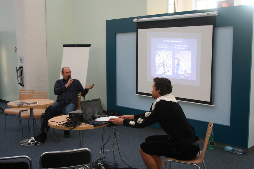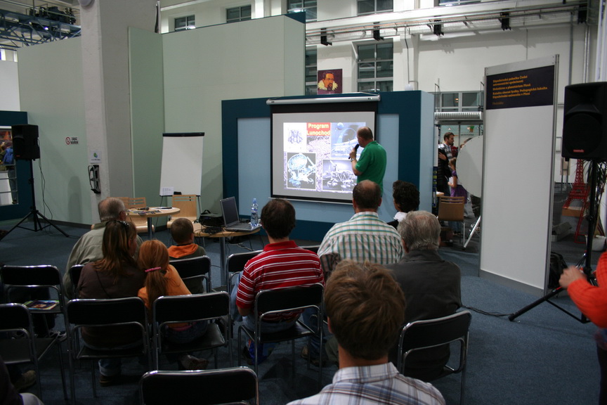 Prvním přednášejícím byl Rostislav Medlín s příspěvkem o historii dalekohledu a jeho využití v astronomii. Po krátké přestávce, která byla vyplněná diskuzí s vývojáři ze Škodovky, se ujal slova ředitel hvězdárny a planetária Lumír Honzík, který popsal historii projektu Apollo a jeho úspěch prvního přistání lidské posádky na Měsíci. Posledním přednášejícím byl Miroslav Randa, který velmi poutavou formou připomněl, jak významnou roli sehrál dalekohled v pozorování Slunce a slunečních skvrn.