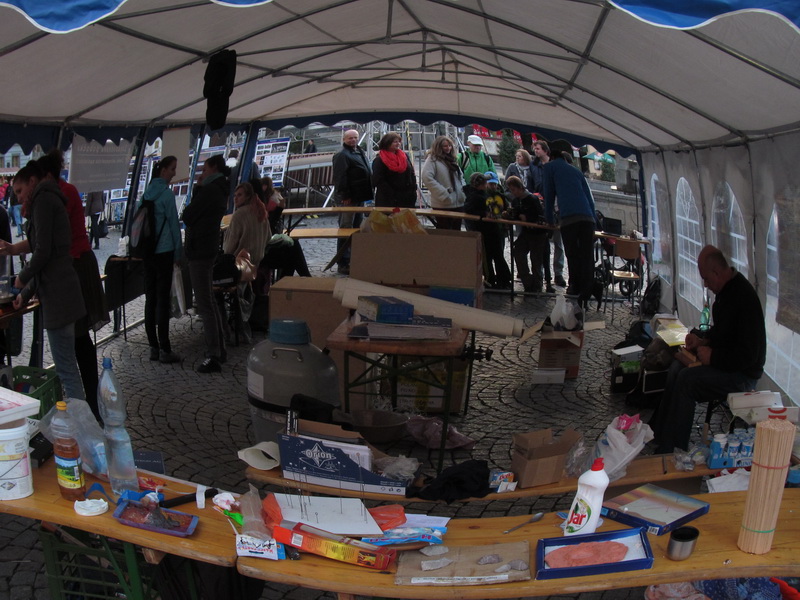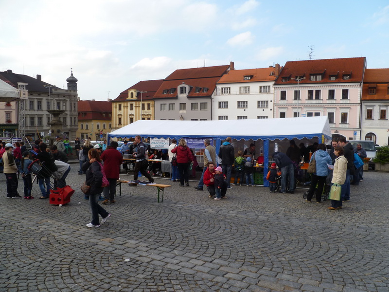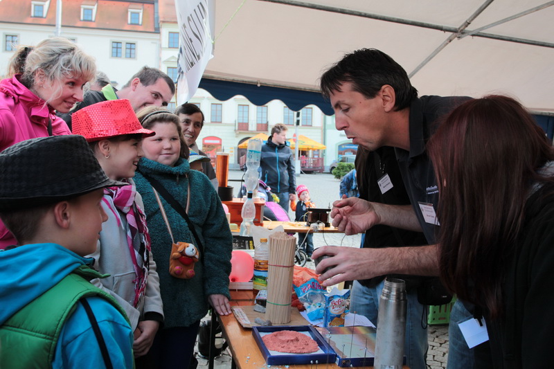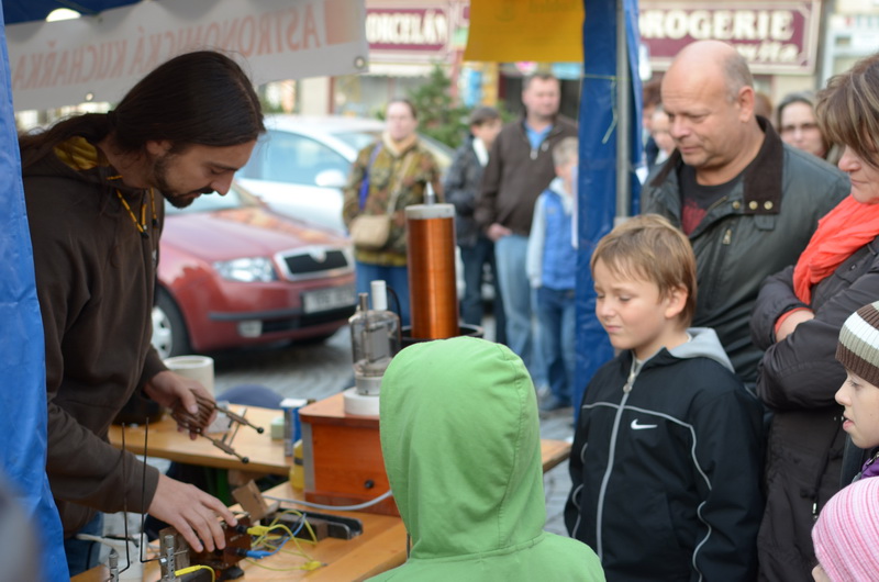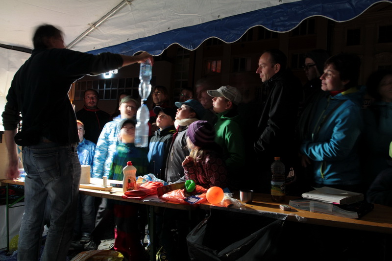Díky štědrému sponzorovi se podařilo na Náměstí Míru v Klatovech postavit velký stan, kde se účastníci mohli seznámit s velkým množstvím pokusů.