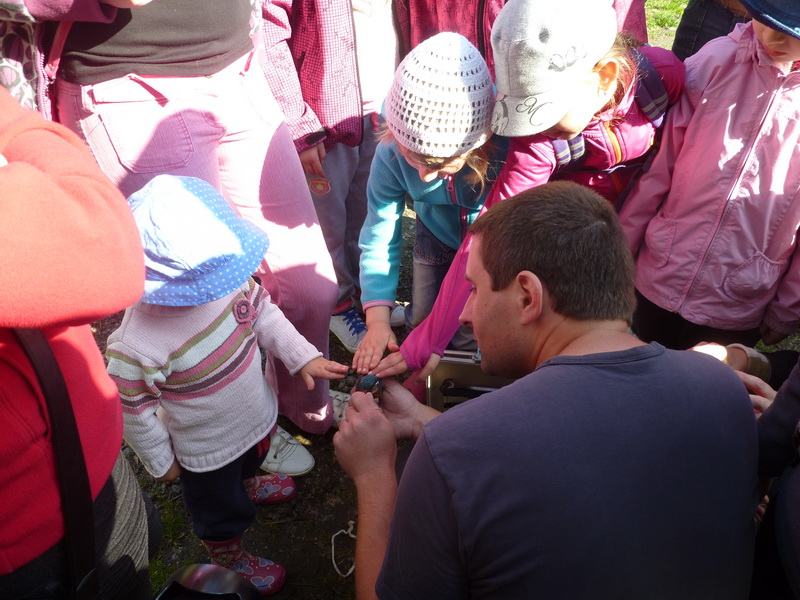 V sobotu 26. 4. 2014 jsme měli opět možnost se zúčastnit akce pojmenované Vítání ptačího zpěvu, kterou si připravil Nepomucký ornitologický spolek (NOS) pod vedením Václava Kováře. Akce se uskutečnila ve Spáleném Poříčí, kde jsme se sešli v 8 hodin před místním zámkem, který byl zvolen jako výchozí bod naší cesty. Odtud jsme mohli vidět na komíně zahnízděného čápa bílého, ale marně jsme vyhlíželi rorýse, kteří sice letos již také dorazili, ale v tuto ranní hodinu nebyli ještě vidět. Po úvodním slově našeho průvodce v zámeckém parku pokračovala naše cesta malebnou krajinou kolem potoka Bradava až k hrázi rybníku Hvížďalka. V průběhu procházky jsme se učili rozpoznávat jednotlivé druhy našich opeřenců, které jsme vábili na jejich hlasy pouštěné z připravených nahrávek, a proto jsme některé druhy mohli pozorovat z bezprostřední blízkosti. Pro odchyt ptáků byly nainstalovány pod hrází rybníka dvě sítě, kam se postupně podařilo chytit např. nádherné ledňáčky říční, ale také pěnici černohlavou, konipase, kosa, skorce vodního a další druhy, které byly okroužkovány a následně vypuštěny zpět do přírody. Akce se velmi povedla, nejenom díky velkému množství okroužkovaných ptáků, ale i samotnou účastí a po dlouhé době i krásným počasím. Z přiložených fotografií si pak můžete udělat obrázek o celém průběhu akce.