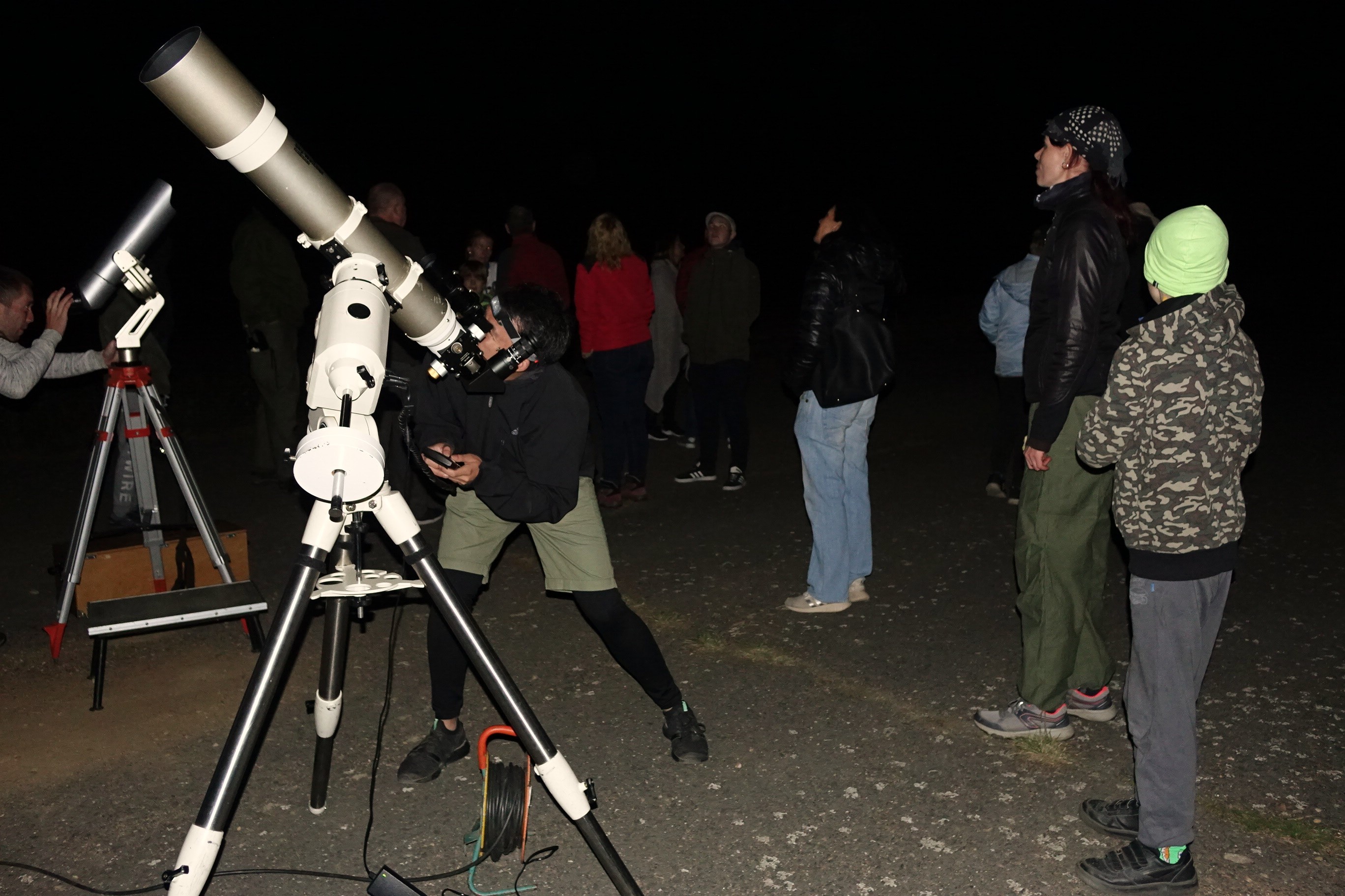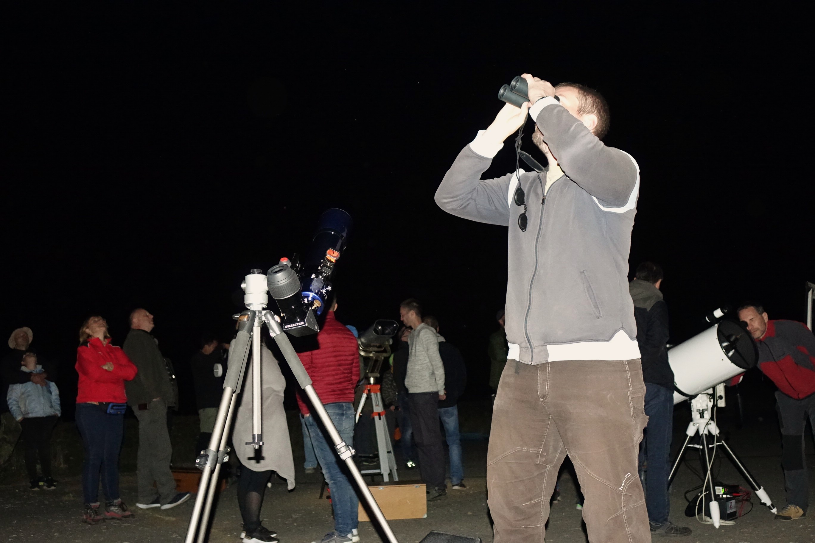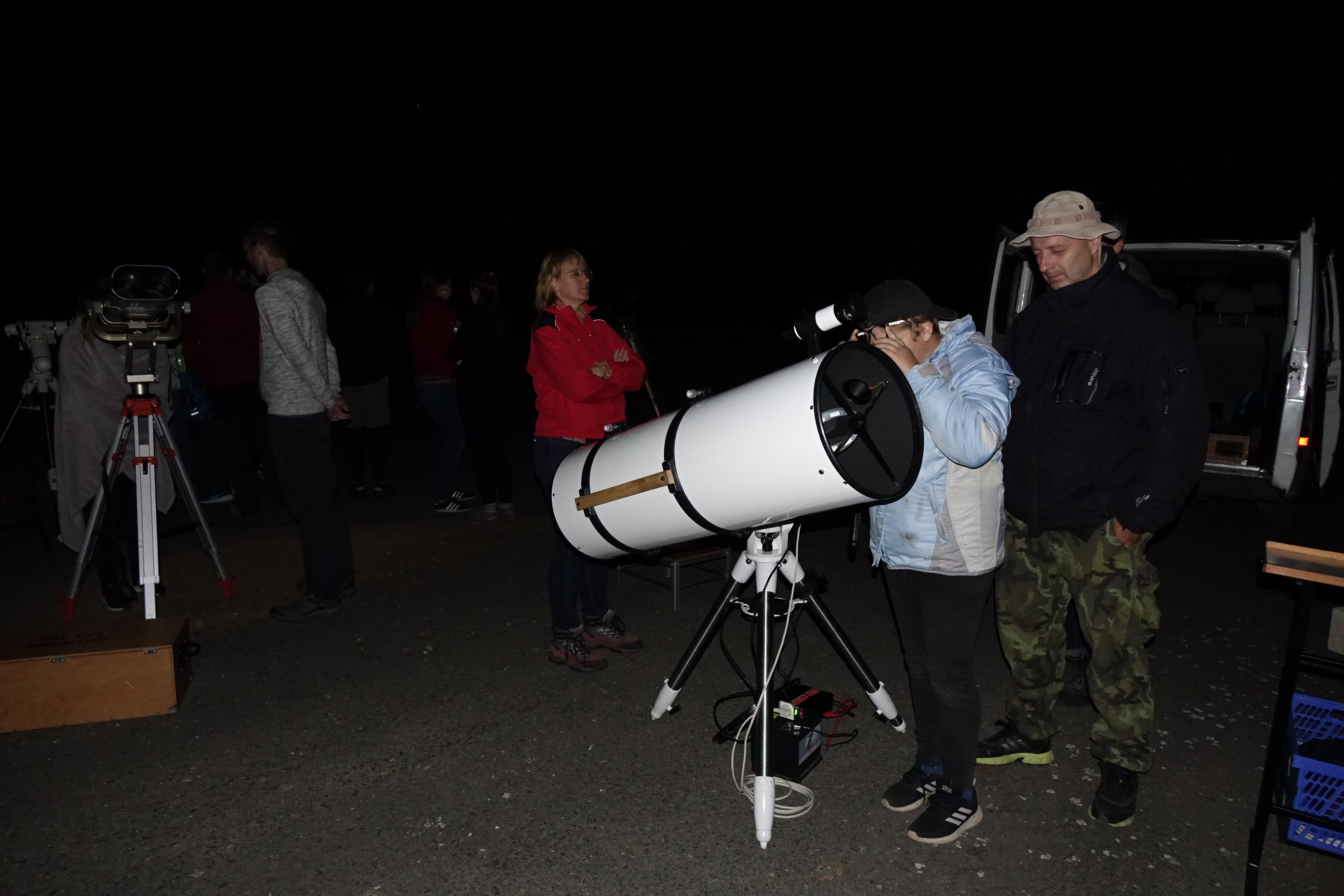 Na přiložených fotografiích Václava Sidorjaka si můžete prohlédnout naše astronomické pozorování, které se uskutečnilo v sobotu 19. 9. 2020 na letišti v Manětíně. Program zahájil po půl deváté Lumír Honzík z Hvězdárny v Rokycanech a Plzni, který seznámil téměř čtyřicítku návštěvníků s aktuálním děním na obloze. Program pak pokračoval prohlídkou řady hezkých objektů noční oblohy dovezenou astronomickou technikou.