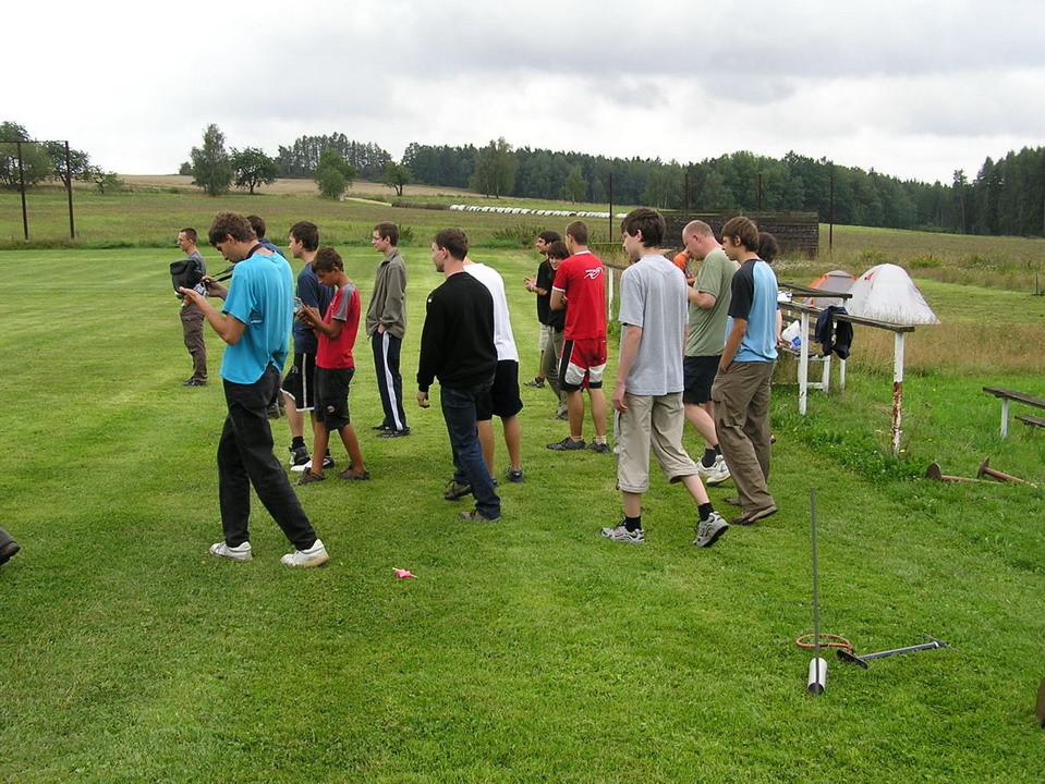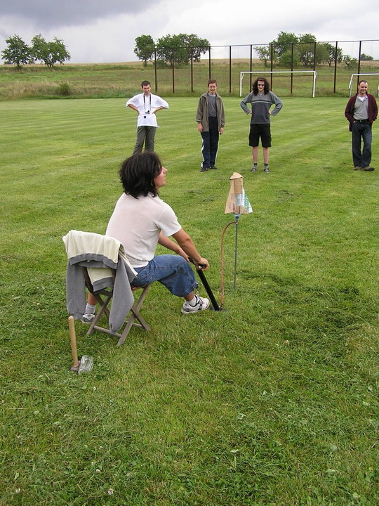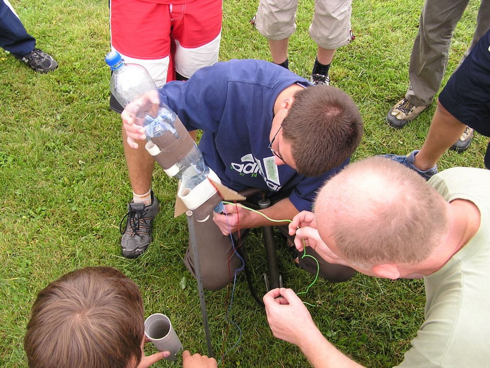 Na začátku bylo vytvořeno 5 skupin pro zvýšení soutěživosti mezi zúčastněnými a mohlo se začít. Prvním úkolem bylo sestavení rakety z předem připravených věcí, přičemž druh pohonu a typ rakety se v každé skupině odlišoval. Za několik desítek minut jsme se mohli na ploše fotbalového hřiště kochat prvními úspěšnými i neúspěšnými starty hned několika druhů létajících strojů. Pravděpodobně největší obdiv si získala raketa, jejímž pohonem byla chemická reakce mezi jedlou sodou a octem. Značných výšek dosahovaly i „vodní“ rakety. Neméně zajímavé byly také „acylpyrinové“ a „sirkové“ rakety.