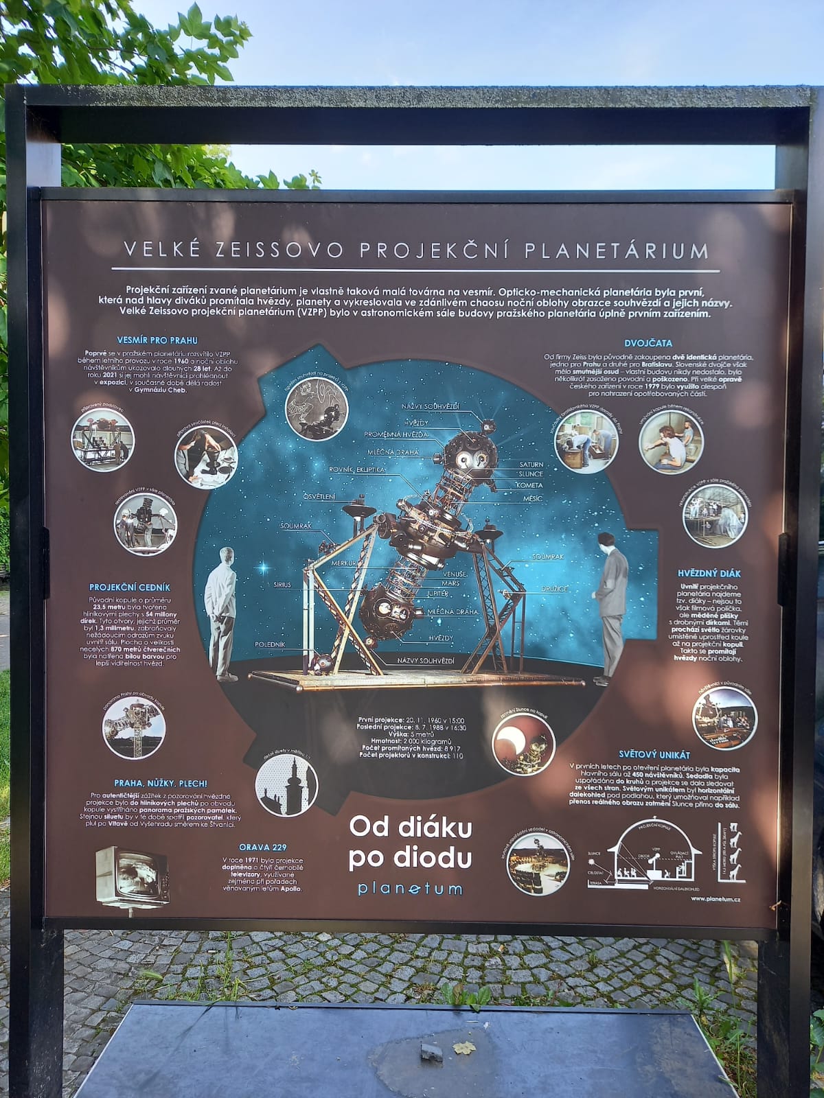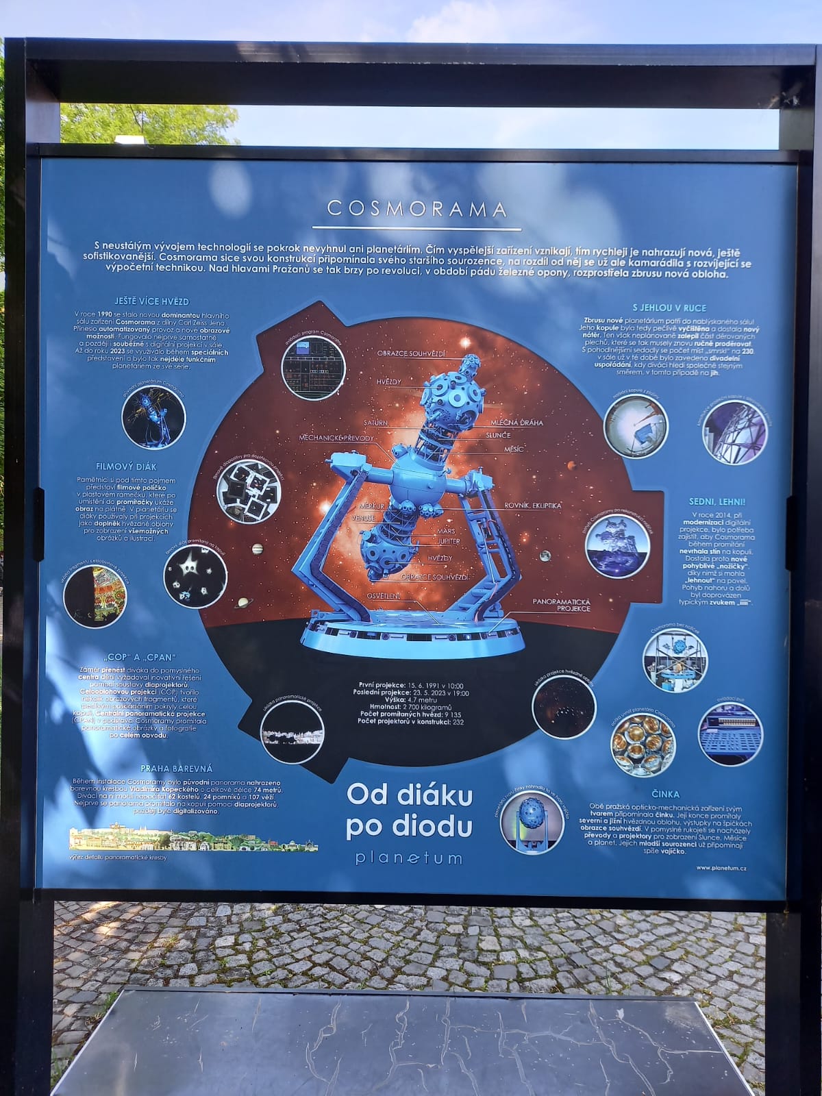 | Panelová výstava před budovou planetária | ||