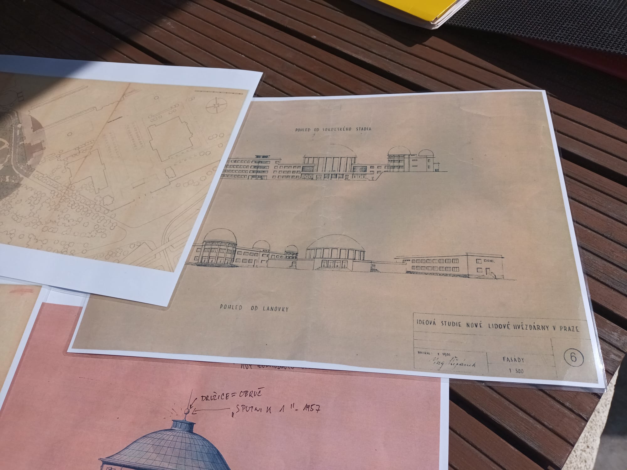 | Blízké okolí planetária s modelem Eagle a dobové plány | ||