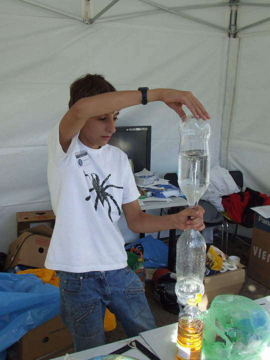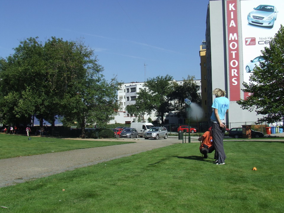 Naše pobočka vsadila na osvědčenou kartu z loňského ročníku, kdy starty raket budily velký zájem hlavně mezi dětmi. A proto jsme se rozhodli pro tento ročník připravit stánek, kde si budou moci děti vyrobit vlastní raketu a samy si jí odstartovat z našeho improvizovaného kosmodromu. Naše rozhodnutí bylo opravdu správné, protože během dvou dnů jsme vyčerpali celkem 10 plně naložených pytlů pet-láhví a během odpalování raket jsme samozřejmě vytvořili několik dálkových rekordů. Jen pro zajímavost činí nový rekord 75 metrů. Na tuto vzdálenost se podařilo dostřelit plastovou láhev od minerální vody jen za pomoci špuntu od vína a pumpičky od kola. V prostoru Šafaříkových sadů mohli návštěvníci vidět nejenom rakety na vodní pohon, ale i starty raket na ocet nebo líh.