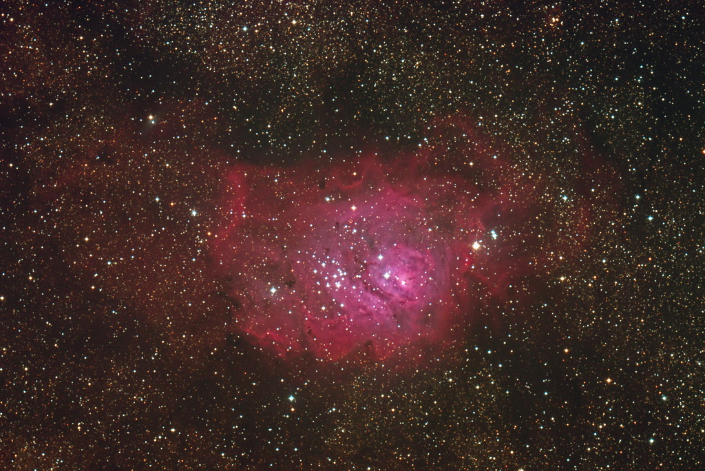 Fotografie zachycuje emisní mlhovinu Laguna, která nese označení dle Messierova katalogu M8. Mlhovinu naleznete v souhvězdí Střelce v místě, kudy prochází Mléčná dráha. Za ideálních podmínek ji lze pozorovat i pouhým okem jako mlhavý obláček. Podstatně lépe na tom budete při použití menšího triedru.