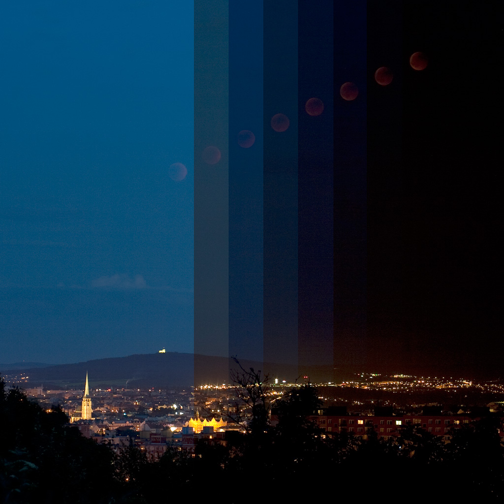 Přiložená fotografie zachycuje mozaiku osmi snímků pořízených v průběhu úplné fáze zatmění Měsíce. Fotografie byly pořízené při soumraku, kdy se Měsíc nacházel ještě nad východním obzorem a zaznamenává změnu vzhledu měsíčního kotouče v průběhu úplné fáze. Tyto změny jsou způsobené přesunem nejtmavší středové části zemského stínu přes měsíční disk. Fotografie dále zachytila pohyb Měsíce po obloze a postupné tmavnutí oblohy během soumraku. Bohužel celý průběh zatmění byl silně ovlivněn přechodem nízké oblačnosti, která do jisté míry znehodnotila další fotografická pozorování.