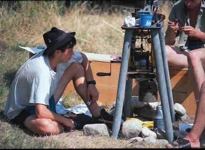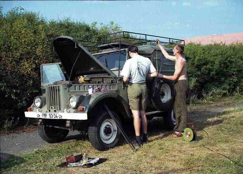 Ráno balíme a opravujeme první drobnou závadu, která se objevila včera večer. Jedná se o zkrat na vnitřním zadním světle. Po nezbytné kontrole auta a nákladu odjíždíme asi v 10.30 hod. do Hodonína, kde doplňujeme zásoby jídla a jiné drobnosti. Zatímco kluci nakupují, zůstávám sám u naloženého auta, které vzbuzuje značnou pozornost. Kolemjdoucí se otáčejí a zřejmě se snaží přečíst expediční znaky na našem voze. Jeden pán jedoucí na kole si auto prohlíží tak intenzivně, že přehlédl paní přecházející přes přechod a srazil ji na zem. O deset minut později si naše auto prohlíží součastně paní nesoucí jakousi krabici a proti ní jdoucí mladík. Následuje vzájemný střet a mladík vyráží paní krabici z ruky. Už jsem jako na trní, ale naštěstí přichází kluci a tak pokračujeme na hranici. Průjezd hranice proběhá celkem dobře. Náš pasovák, když se dozvídá kam jsme se s tímhle vydali pouze vytřeštil oči, a pak prohlásil, že jsme dobrodruzi. Slovenští celníci požadují, abychom si došli na českou celnici pro "pečiatku" do papírů s převáženou technikou. Český celník ovšem chce před potvrzením všechny věci vidět a zkontrolovat. Snažíme se ho varovat, že by to bylo velmi problematické, ale nedá si říct. "Jak myslíte" pokrčili jsme rameny. Sotva vylezl ven a spatřil naložené Aro ihned ho ta horlivost zase přechází a že mu stačí, když uvidí pouze něco. Nakonec jsme mu ukázali pouze jeden objektiv z fo»áku, mávl rukou, dal razítko na naše čestné prohlášení a my mohli pokračovat. To ovšem není tak jednoduché, nebo» auto odmítlo startovat. A tak před udivenými zraky okolních řidičů a plnému autobusu čekajícímu na odbavení se snažím Aro nastartovat klikou. Po chvilce auto naskakuje a my pokračujeme po celkem dobrých silnicích přes Trnavu, Galantu, Nové Zámky na hraniční přechod do Komárna. Naštěstí i tímto přechodem do Maďarska projíždíme bez problémů. Požadují po nás pouze pasy a navíc i technický průkaz od vozu. Ihned za hranicí vjíždíme do prudké bouřky. Tmavé mraky až k zemi, jeden blesk za druhým a slejvák, že nám neberou ani stěrače. Rozsvěcuji osvětlení včetně zadní červené mlhovky. Protože nikdo z nás ještě nikdy neviděl Balaton, pokračujeme na jih pěknou kopcovitou krajinou přes Kisbár a Vesprém k Balatonu, abychom se vykoupali. Zajížďka není zase tak velká. Vjíždíme do dalších dvou bouřek stejně prudkých jako ta předchozí. První kontakt s Balatonem je pro nás fantastický a neobvyklý zážitek. Zdá se nám, že na obloze vidíme zvláštní trojúhelníkové mraky. Až po chvilce zjiš»ujeme, že koukáme na plachty lodí na ploše Balatonu. Je totiž krátce po dešti a tak je Balaton částečně zahalen v oparu, který zahalil kontury mezi pevninou a vodní plochou. Zastavujeme v Balatonkenese a jdeme se vykoupat. Pobřeží je mělké a teplá voda je zřejmě jemným pískem a jílovitým dnem zbarvená do podivné šedobílé barvy. S chutí se koupáme a smýváme pot. Bohužel času je málo a tak nezbývá než pokračovat dál na Enying, Cece, Solt, Kiskörös a Tázlár. Během dne projíždíme čtyřmi bouřkami, v noci vjíždíme do další. Navíc nám přestávají pracovat stěrače. Jedu několik kilometrů v dešti a v noci bez stěračů. Navíc mi přestala svítit kontrolka dálkových světel což je problém v městech s pouličním osvětlením. Po několika kilometrech zastavuji a opravuji stěrače. Naštěstí se jedná pouze o prasklou pojistku. V noční krajině hledáme v bezlesnatém Maďarsku alespoň náznaky lesa. Pomáháme si i přídavným hledáčkem. Nakonec jakýsi "skoro les" nacházíme pár kilometrů před Kiskumajsou. Stavíme stany a v noci drobně prší. Honzu při vykonávaní velké potřeby skoro napadli psi z nedalekého stavení o kterém jsme nevěděli.